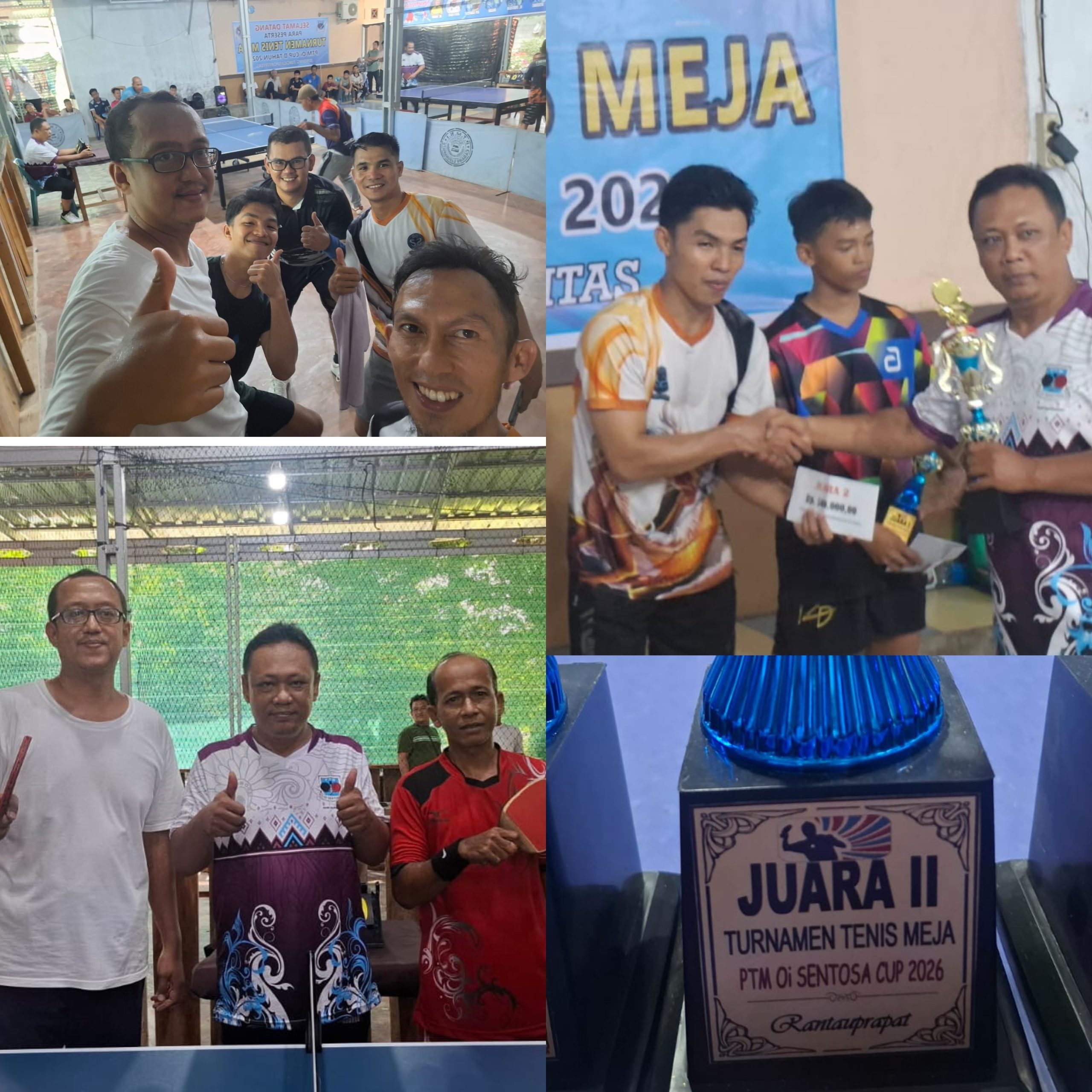 Padangsidimpuan, Sumtengpos- PTMSI Kota Padangsidimpuan belom 1 bulan terima SK, sudah bertanding persahabatan di Rantau Parapat, yaitu salah satu PTM Sahataku Padangsidimpuan, berhasil meraih juara dua dalam Turnamen PTM Oi Sentosa Cup ll tahun 2026, yang digelar di GOR Oi Sentosa, Rantauprapat, Kabupaten Labuhanbatu, Sumatera Utara pada Sabtu (31/01) sampai Minggu (01/02/26).