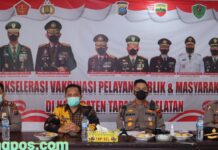 Paluta, Sumtengpos -Mempercepat pelaksanaan Vaksinasi, Kapolres Tapsel AKBP Roman Smaradhana Elhaj, SH, SIK, MH bersama Forkopimda Paluta (Bupati Andar Amin Harahap, SSTP, MSi dan...