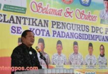 Padangsidimpuan, Sumtengpos - Walikota Padangsidimpuan Irsan Efendi Nasution SH hadiri Pelantikan Pengurus Cabang PGRI Kecamatan Periode 2021-2026 Kota Padangsidimpuan Tahun 2021 di aula MAN...