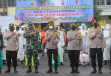 Polres Padangsidimpuan Melaksanakan Penyemprotan Disinfektan Secara Serentak di Kota Padangsidimpuan