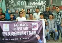 Himpunan Pengusaha Muda Indonesia Kota Padangsidimpuan ngobrol inspiratif bersama pemilik dan staff RAU FM Cafe Radio lokal Kota Padangsidimpuan, Sabtu(19/1/2019).