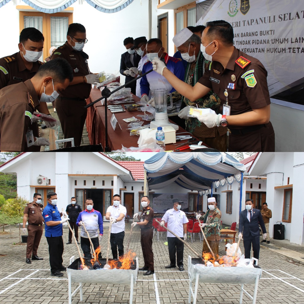 Pemusnahan dipimpin oleh Kepala Kejaksaan Negeri Tapanuli Selatan, Muhammad Indra Muda Nasution, S.H., M.H., dan turut dihadiri jajaran pejabat struktural Kejari Tapanuli Selatan, antara lain Kepala Subbagian Pembinaan Sulaiman A. Rifai H., S.H., Kepala Seksi Intelijen Obrika Yandi Simbolon, S.H., Kepala Seksi Tindak Pidana Umum Daniel Tulus Marulitua Sihotang, S.H., M.H., Kepala Seksi Tindak Pidana Khusus Ivan Darmawulan, S.H., Kepala Seksi Perdata dan Tata Usaha Negara Ricky Tohom Adolf Pasaribu, S.H., M.H., serta Kepala Seksi Pemulihan Aset dan Pengelolaan Barang Bukti Johannes, S.H., M.H.