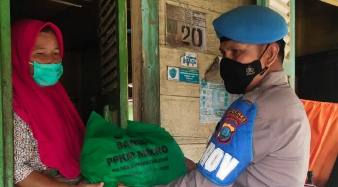 Tapanuli Selatan, Sumtengpos - Sebagai wujud kepedulian Alumni Batalyon Wicaksana Laghawa Akpol 2002 di tengah pandemi Covid-19, Polres Tapsel membagikan 10 paket sembako kepada warga kurang mampu dalam kegiatan Operasi Yustisi.Kegiatan ini dilaksanakan Kamis pagi (14/10/2021) sekira pukul 09.00 WIB di Kecamatan Angkola Selatan Tapsel.