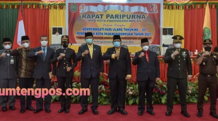 Padangsidimpuan, Sumtengpos - Dewan Perwakilan Rakyat Daerah (DPRD) Kota Padangsidimpuan hari ini menggelar rapat paripurna istimewa dalam rangka memperingati Hari Ulang Tahun (HUT) Kota Padangsidimpuan ke-20, Jum'at (15/10).
