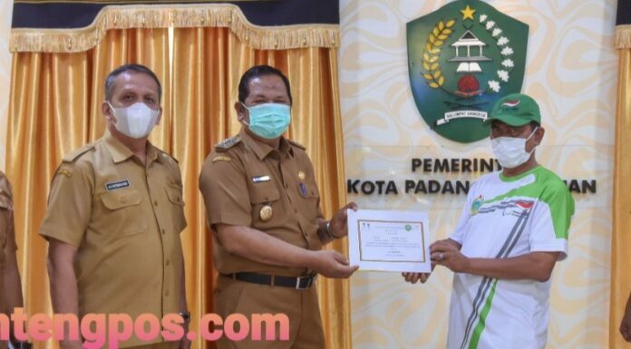 Padangsidimpuan, Sumtengpos - Walikota Padangsidimpuan Irsan Efendi Nasution, SH lepas Atlet Catur Tuna Daksa, Syahril Tanjung yang tergabung dalam kontingen Sumatera Utara pada Peparnas (Pekan Paralympic Nasional) XVI Papua 2021 di Aula Utama Kantor Walikota Padangsidimpuan, Selasa (19/10).