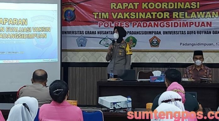 Kapolres Padangsidimpuan memimpin Rapat Koordinasi Tim Vaksinator Relawan Polres Padangsidimpuan di Aula Polres Padangsidimpuan 17/9/21.