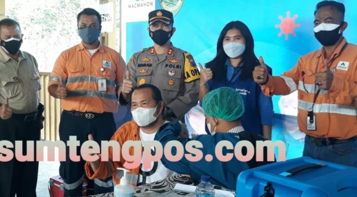 Batangtoru,Sumtengpos - PT Agincourt Resources (PTAR), pengelola Tambang Emas Martabe menggelar program Vaksinasi Gotong Royong tahap pertama yang dilaksanakan pada Minggu 25 Juli 2021 sampai dengan Selasa 27 Juli 2021, di Tambang Emas Martabe, Kabupaten Tapanuli Selatan, Sumatra Utara.