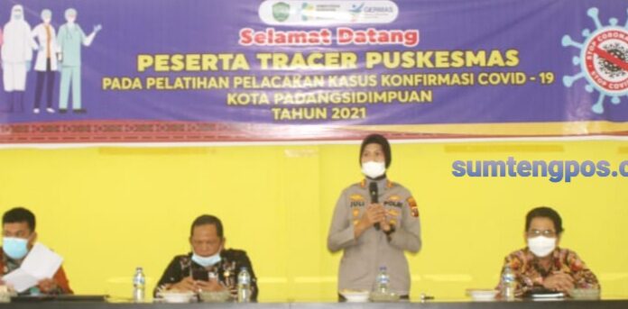 Padangsidimpuan, Sumtengpos - Kapolres Padangsidimpuan Pimpin Kegiatan Pelatihan Pelacakan Kasus Konfirmasi Covid-19 terhadap Tracer Puskesmas Kota Padangsidimpuan di Aula Kantor BKD Kota Padangsidimpuan 29/7/21.
