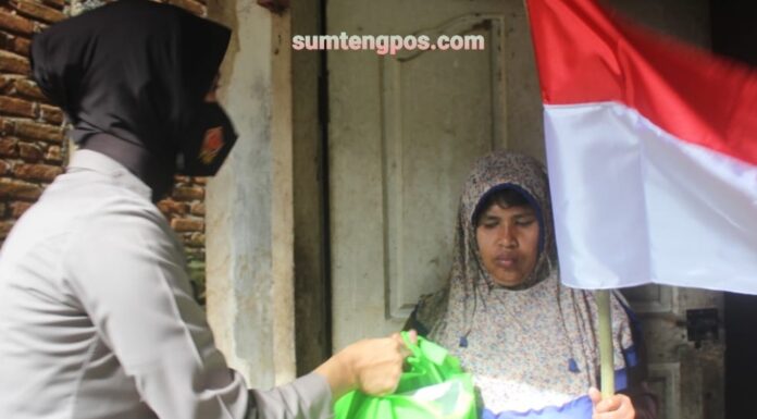 Padangsidimpuan, Sumtengpos - Wujud Peduli Polres Padangsidimpuan Berbagi dan Peduli Terhadap Penderita Tumor, Kapolres menyerahkan Bansos serta bendera Merah Putih di Kel Sidangkal Padangsidimpuan Selatan 4/8/21.