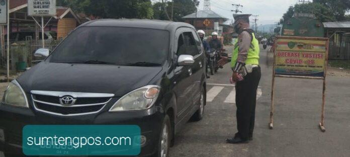 Tapsel, Sumtengpos - Pelaksanaan Operasi Yustisi dalam rangka "Penerapan Disiplin & Penegakan Hukum Protokol Kesehatan" sesuai Peraturan Bupati (Perbup) Kabupaten Tapanuli Selatan No. 29 tahun 2021 hari ini dilaksanakan di Jalinsum Sibolga Desa Parsalakan Kec.Angkola Barat Kab. Tapanuli Selatan 13/6/21.