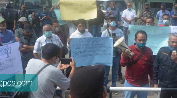 Padangsidimpuan, Sumtengpos - Gabungan wartawan dari berbagai media massa hari ini menggelar aksi unjukrasa dan aksi solidaritas di depan Mapolresta Padangsidimpuan, Polres Tapsel, Polres Madina 21/6/21.