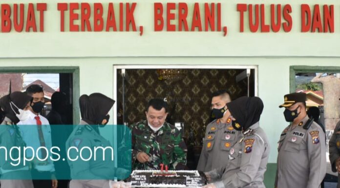 Tapsel, Sumtengpos - Kapolres Tapanuli Selatan AKBP Roman Smaradhana Elhaj bersama PJU Polres Tapanuli Selatan melaksanakan Anjangsana / Kunjungan Kerja Ke Kodim 0212 / Tapanuli Selatan dan Batalyon Infanteri 123 Rajawali dalam rangka menyampaikan Ucapan dan Merayakan HUT Kodam I / Bukit Barisan ke- 71 di Mako Kodim 0212/Tapanuli Selatan dan Mako Batalyon Infanteri 123 Rajawali 21/6/21.