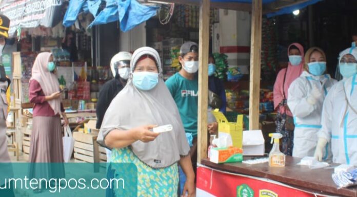 Padangsidimpuan, Sumtengpos - Kegiatan Test Swab Antigen terhadap Pengunjung dan Pedagang Pasar Inpers Sadabuan Link 1 yang tidak menggunakan Masker Pasar dihadiri Kapolres Padangsidimpuan AKBP Juliani Prtihatini 22/5/21.