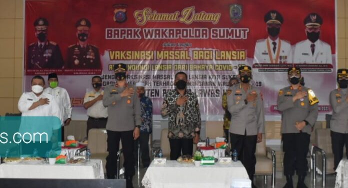 Paluta, Sumtengpos - Kunjungan Kerja Wakapolda Sumut dalam rangka Peninjauan Vaksinasi Massal Covid - 19 Bagi Lansia Di Wilayah Hukum Polres Tapanuli Selatan Aula Gedung Serbaguna Kantor Bupati Padang Lawas Utara yang berada di Lingk. I Kel. Pasar Gunungtua Kec. Padang Bolak Kab. Padang Lawas Utara 4/6/21.