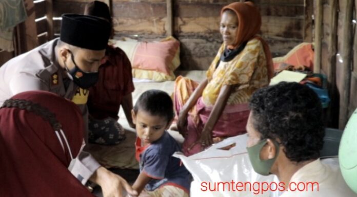 Panyabungan, Sumtengpos- Kapolres Madina AKBP Horas Tua Silalahi, S.I.K. M.Si mengunjungi ibu Kholidah Hannum di desa Hutabaringin, Kecamatan Panyabungan barat, Kabupaten Mandailing natal yang mengidap penyakit asites (Perut membengkak), Kamis (04/03/2021).