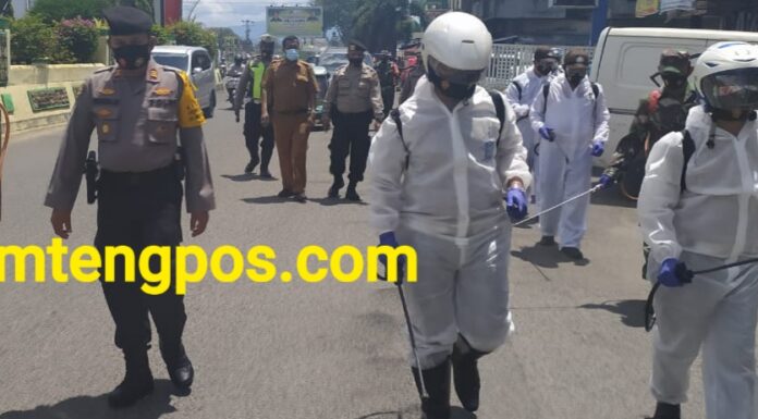 Polres Padangsidimpuan : Penyemprotan Disenfektan & Himbauan Protokol Kesehatan Mencegah Penyebaran Virus Covid – 19 di Kota Padangsidimpuan