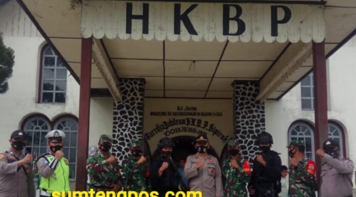 Tapsel, Sumtengpos - Pelaksanaan Kegiatan Patroli Skala Besar dalam rangka Pengamanan Tahun Baru 2021 yang dipimpin oleh Kapolres Tapanuli Selatan AKBP ROMAN SMARADHANA ELHAJ melalui Pawas Kasat Sabhara AKP SOFYAN H. NASUTION di Gereja HKBP Jubileum Sipirok Tapsel 1/1/21.