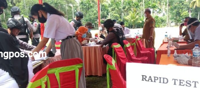 Tapsel, Sumtengpos - Sebanyak 162 personil Polres Tapanuli Selatan dan 30 personil Brimob Yoc C Sipirok, Senin (7/12) melakukan Rapid Tes di lapangan Serasi Kelurahan Bintuju Kecamatan Angkola Muaratais.