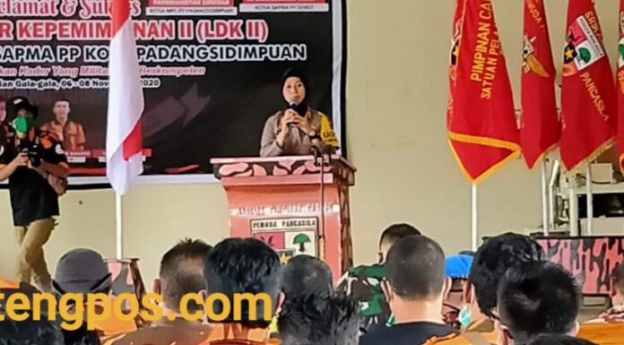 Padangsidimpuan, Sumtengpos - Kapolres Padangsidimpuan AKBP Juliani Prihartini SIK,MH hadir dan membuka latihan dasar kepemimpinan Ke- II (LKD-II) Pengurus Cabang Satuan Siswa Pelajar Mahasiswa Pemuda Pancasila (SAPMA PP) Kota Padangsidimpuan 6/11/20.