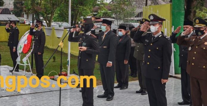 Padangsidimpuan, Sumtengpos - Kapolres Padangsidimpuan AKBP Juliani Prihartini Sik MH Upacara Ziarah Nasional Memperingati Hari Pahlawan Ke-75, acara dilaksanakan di TMP Bahagia Jl Melati Kecamatan Padangsidempuan Selatan Kota Padangsidempuan 10/11/20.