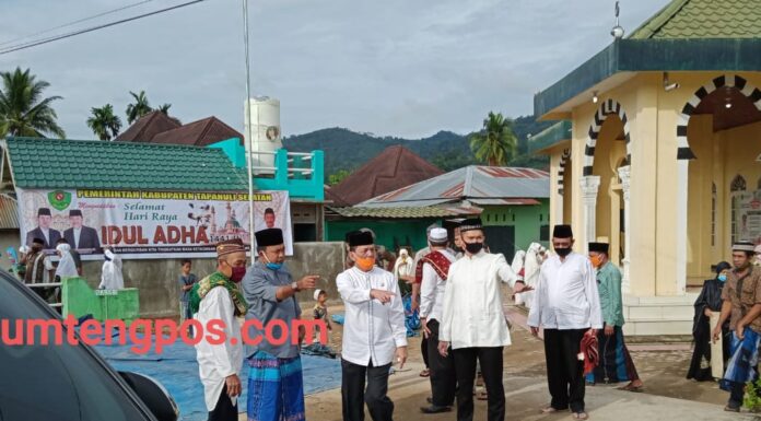 Tapsel,Sumtengpos– Kapolres Tapsel AKBP Roman Smaradhana Elhaj bersama Bupati Tapanuli Selatan dan unsur forkopimda Kabupaten Tapanuli Selatan pada hari Jumat (31/07/2020) laksanakan Sholat Idul Adha 1441 Hijriyah di Masjid Nurul Iman Desa Holbung Kecamatan Angkola Muara Tais KabupatenTapanuli Selatan.
