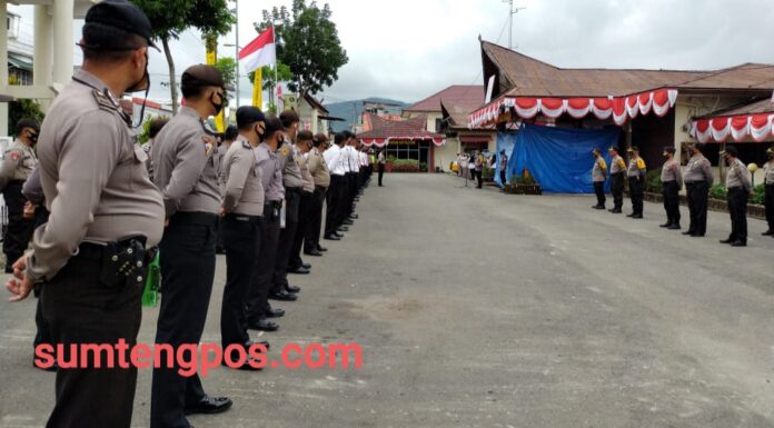 Padangsidimpuan, Sumtengpos - Kapolres Tapanuli Selatan AKBP Roman Smaradhana Elhaj Pimpin pelaksanaan apel pagi personil polres tapanuli tapanuli selatan di halaman apel polres tapsel. turut hadir dalam kegiatan tersebut Wakapolres Tapanuli Selatan dan para PJU Polres Tapsel, Senin (03/08/2020).