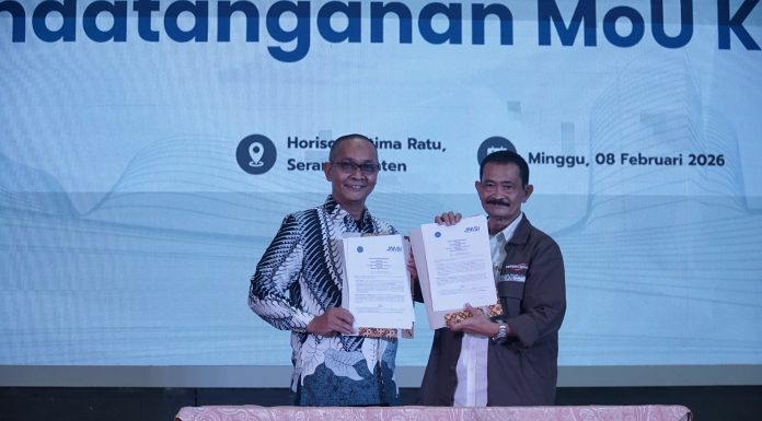 Serang, Sumtengpos- PT Merdeka Solusi Inovasi Digital (Merdeka Institute) melakukan penandatangan kerjasama (Memorandum of Understanding/MoU) dengan Jaringan Media Siber Indonesia (JMSI).