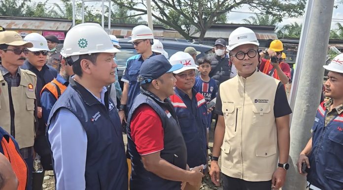 Chief Operation Officer (COO) Danantara sekaligus Kepala BP BUMN, Dony Oskaria, meninjau progres pembangunan Huntara yang berlokasi di areal konsesi PT Perkebunan Nusantara...