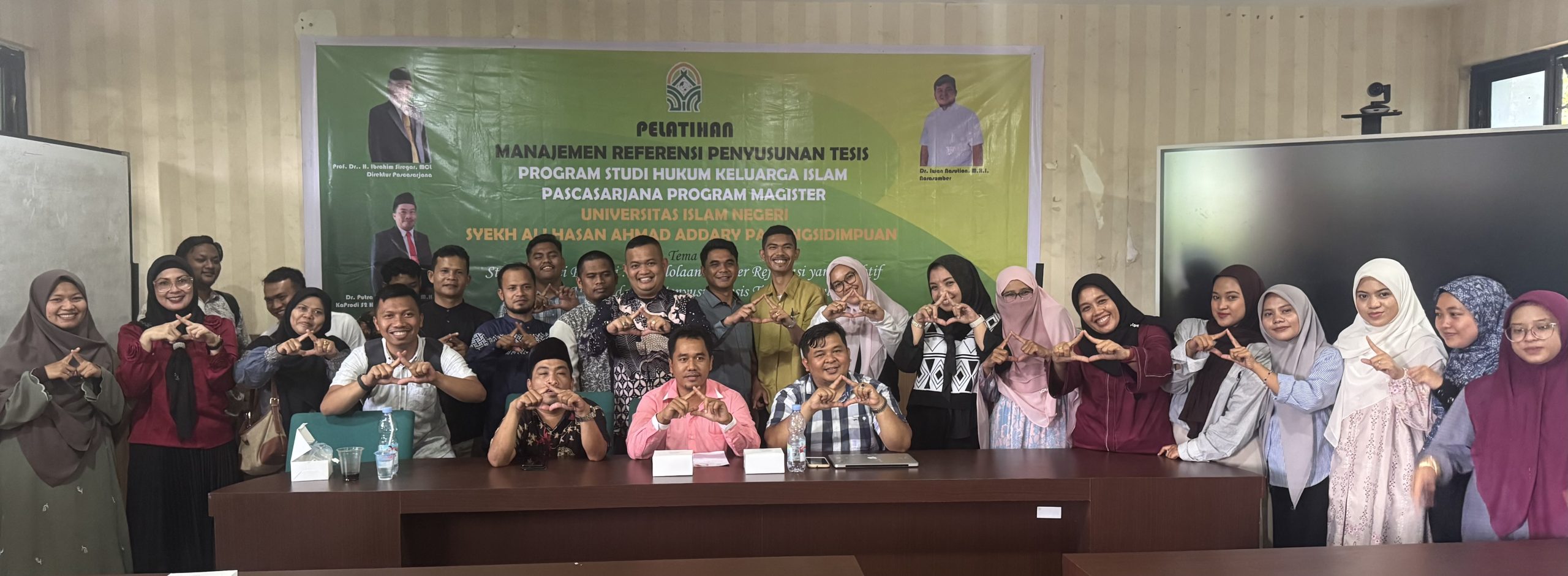 Padangsidimpuan, Sumtengpos- Direktur Pascasarjana Universitas Islam Negeri Syekh Ali Hasan Ahmad Addary Padangsidimpuan, Prof.Dr.H Ibrahim Siregar melalui Kaprodi S2 Hukum Keluarga Islam Dr. Putra Halomoan Hsb M.H Sukses menggelar Pelatihan Penulisan Jurnal Bereputasi internasional & Penyusunan Tesis bertepat di Gedung Pascasarjana UIN Padangsidimpuan 15/11/2025.